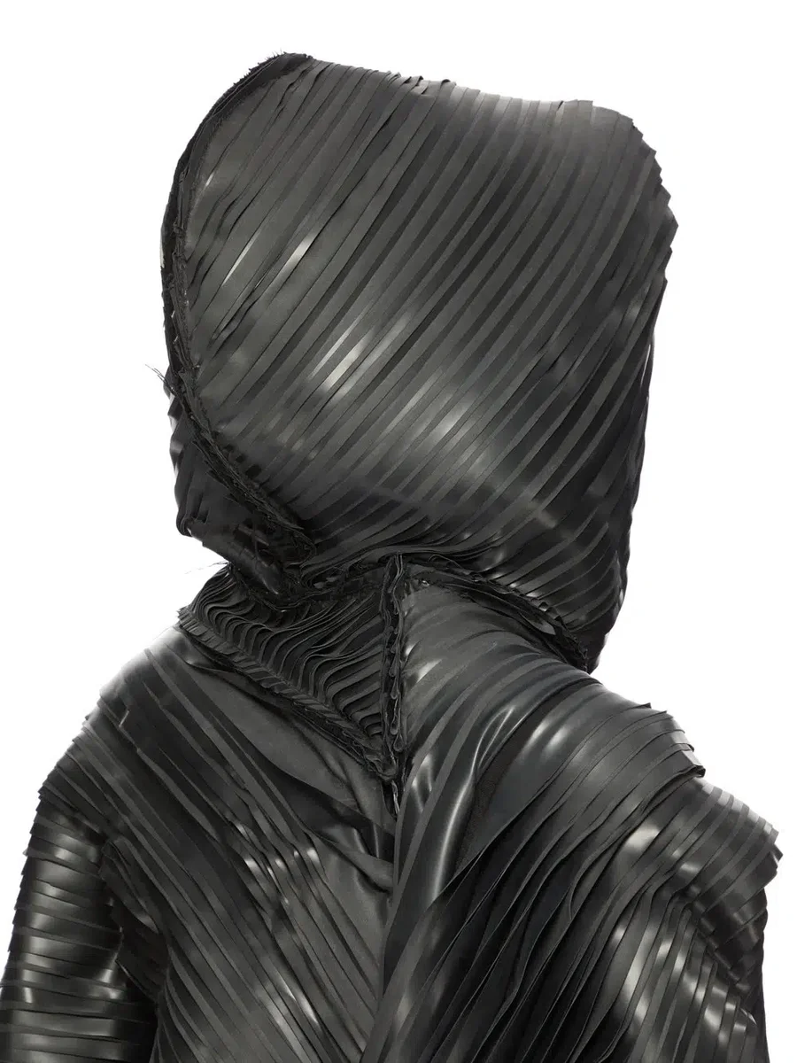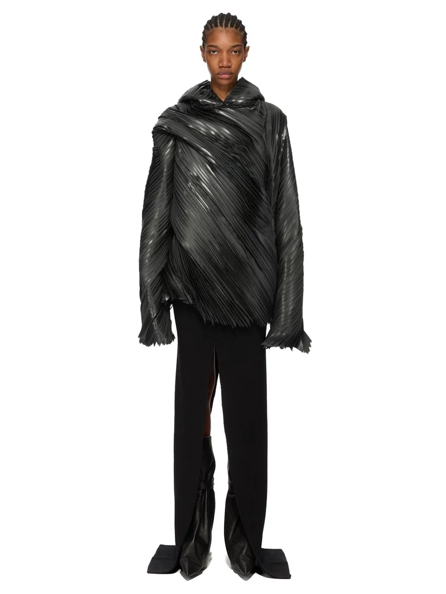 RICK OWENS FW25 CONCORDIANS RUNWAY SEB HOODIE IN BLACK LATEX
