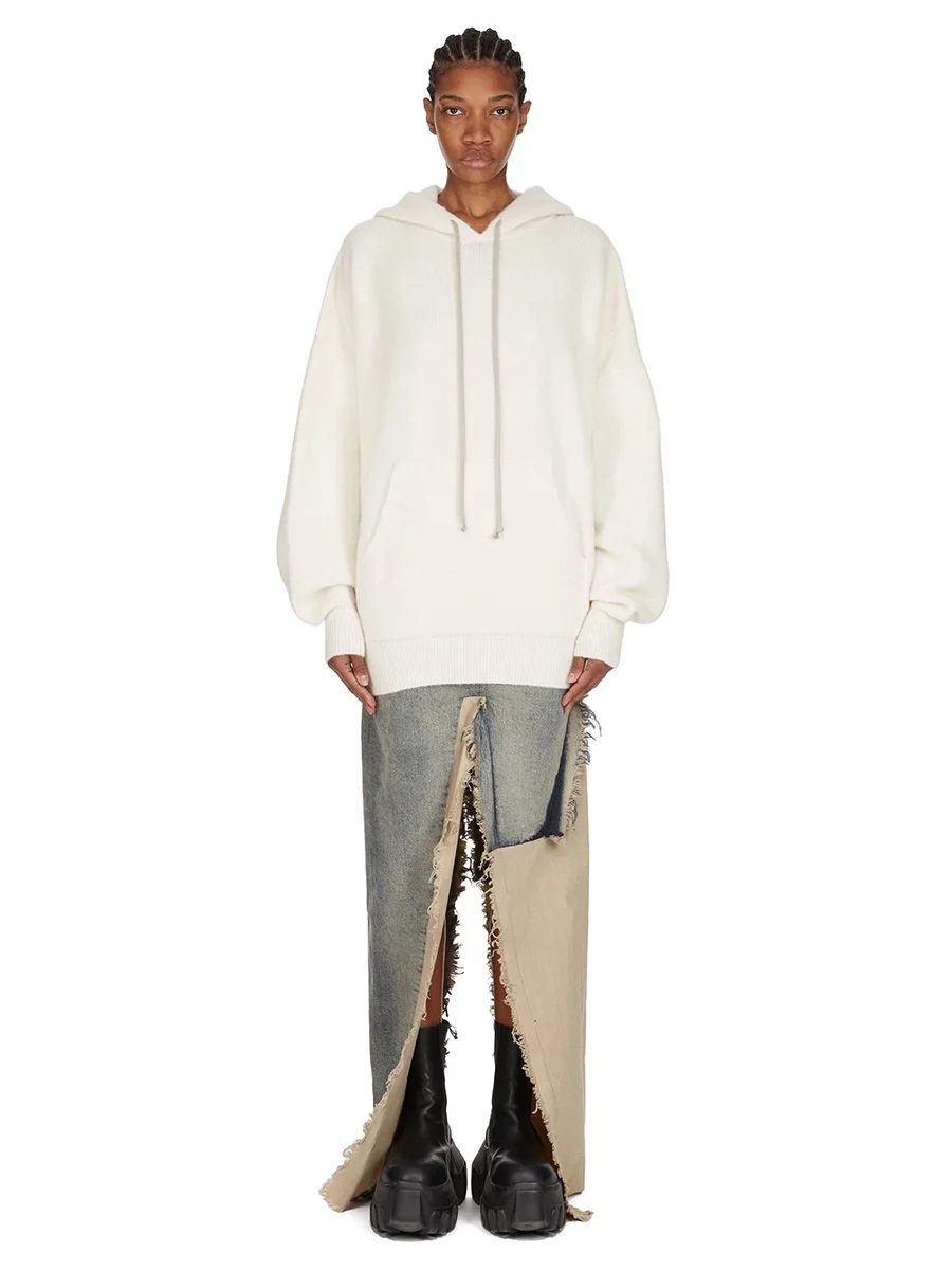 RICK OWENS FW25 CONCORDIANS RUNWAY HUN HOODIE IN MILK ALPACA KNIT