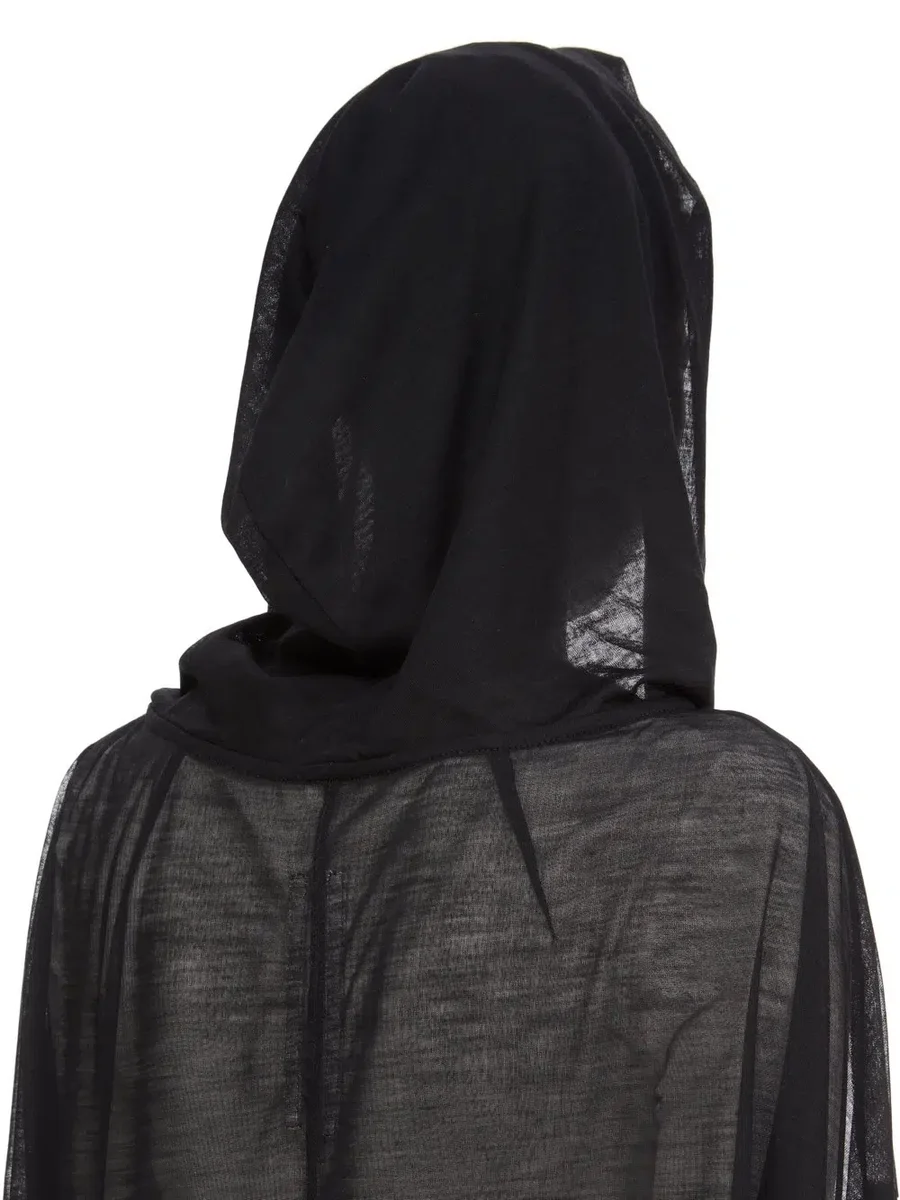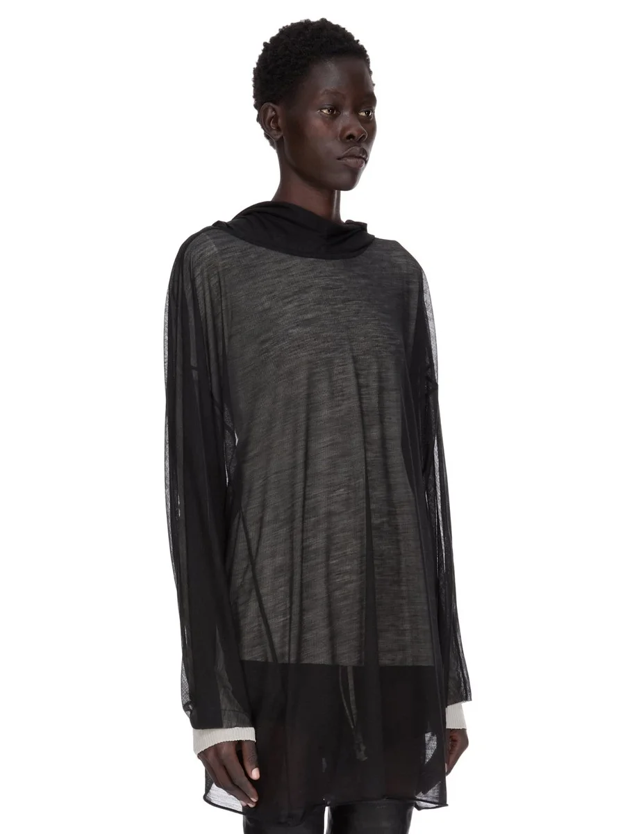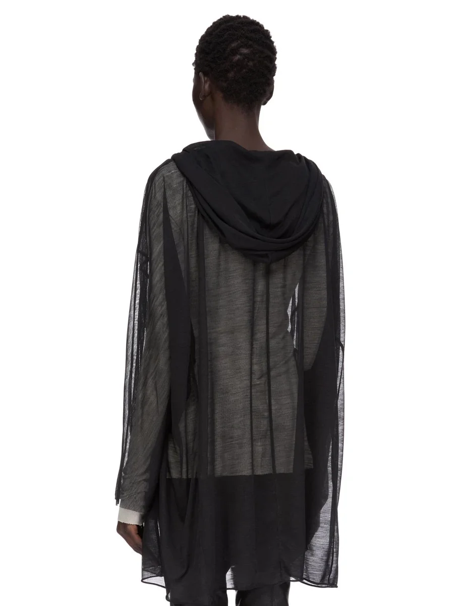 RICK OWENS FW25 CONCORDIANS HOODED TUNIC IN BLACK SHEER WOOL JERSEY