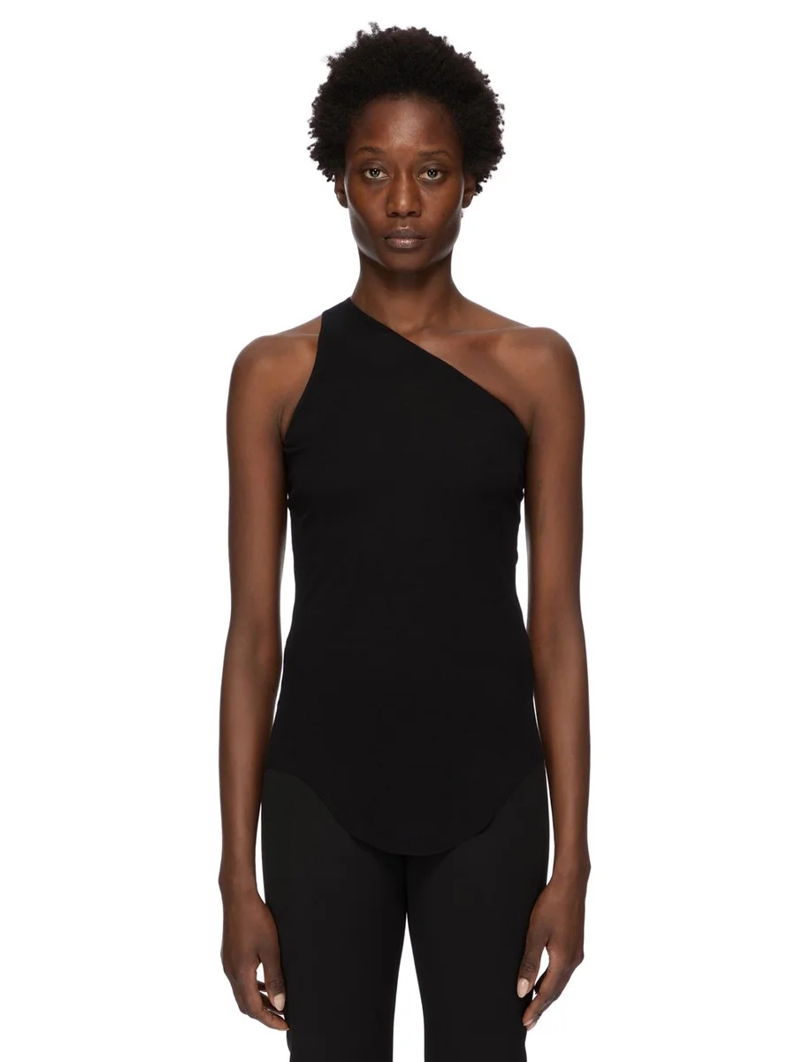 RICK OWENS FW25 CONCORDIANS SAHARA TOP IN BLACK FLUID VISCOSE JERSEY